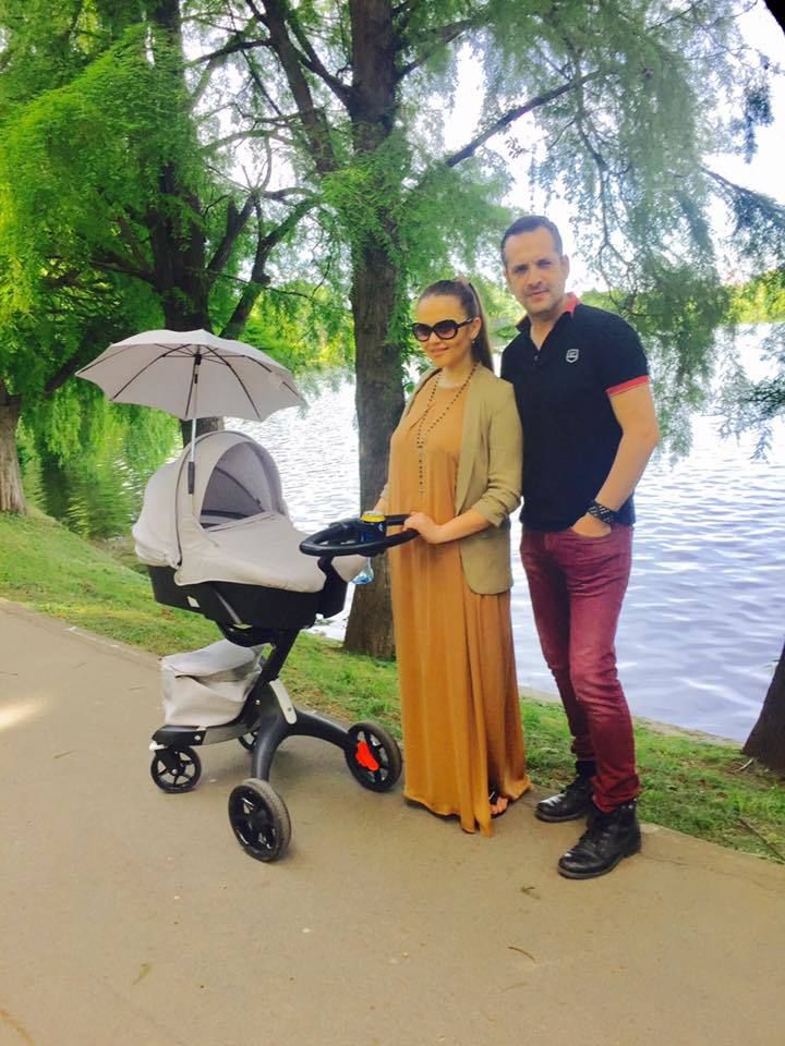 ”Îmi exersez noul job”, a scris Mădălin Ionescu în dreptul fotografiei în care apare alături de Cristina Şişcanu şi fiica lor.