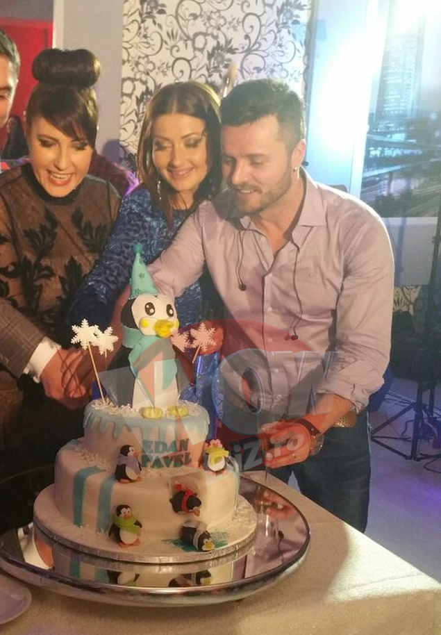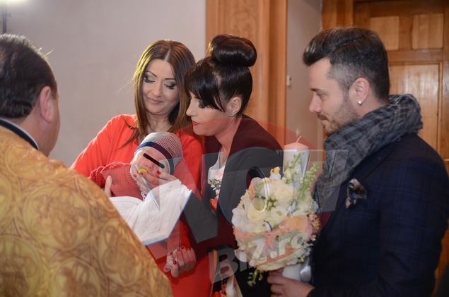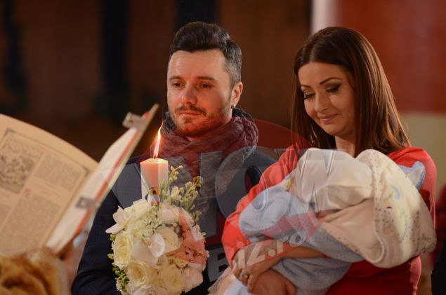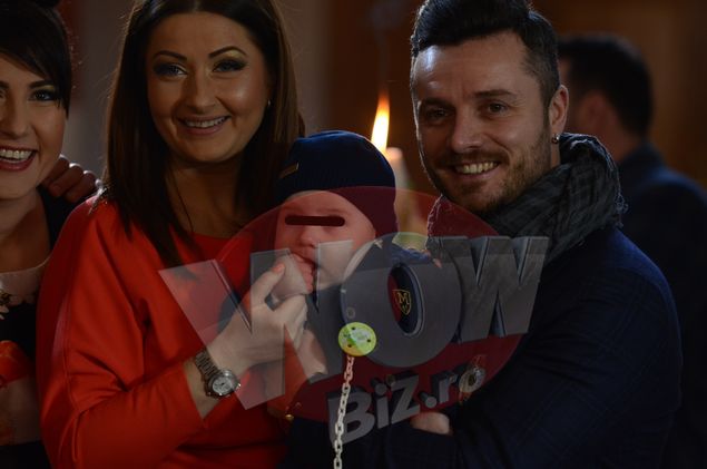 Micutul Edan a fost foarte cuminte la slujba. A stat linistit in bratele nasei si a mamei sale si nu a plans nici macar un pic in momentul in care a fost introdus in cristelnita. Mai mult, atunci cand nasul a vrut sa il tina si el un pic, pustiul de numai cateva luni a inceput sa zambeasca si sa bucure, semn ca era destul de obisnuit cu artistul.