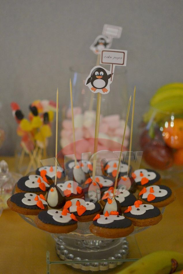 In plus, la intrarea in local au amenajat un candy-bar, cu prajiturele in forma tot de pinguin, din ciocolata alba si neagra, plus diverse sucuri naturale.