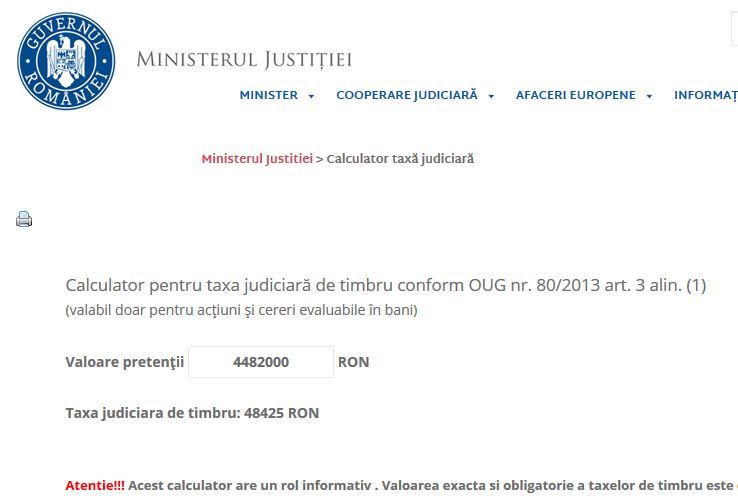 Astfel, la o taxa de timbru de 48.425 lei, conform site-ului Ministerului Justitiei, rezulta o valoare a pretentiilor de 4.482.000 lei, adica ceva mai putin de 1.000.000 euro. Cam la atat au calculat cei doi frati ca s-ar ridica adevarata avere a Ilenei Ciuculete.