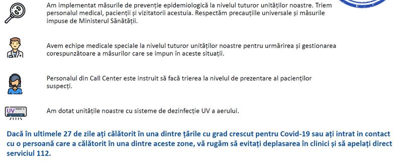 O clinică din top 3 rețele private de sănătate și-a anunțat clienții că dacă în ultimele 27 de zile au călătorit într-o zonă de risc sau au intrat în contact cu o persoană infectată cu coronavirus să evite să vină la unitatea medicală și să apeleze 112. Până acum, specialiștii și autoritățile din România au vorbit despre o perioadă de de 14 zile de carantină iar cazurile preluate de DSP în anchetă epidemiologică are printre principalele criterii exact perioada de incubație de 14 zile.