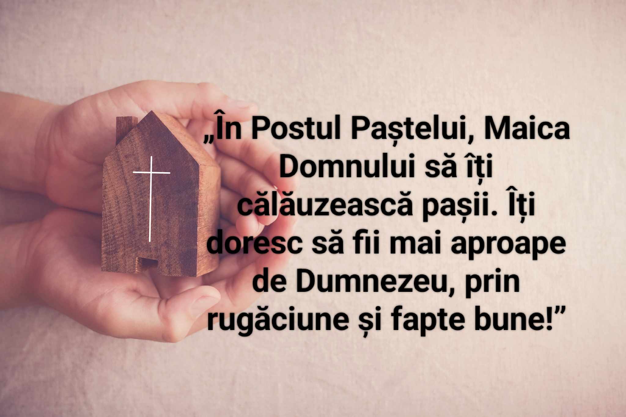 „În Postul Paștelui, Maica Domnului să îți călăuzească pașii. Îți doresc să fii mai aproape de Dumnezeu, prin rugăciune și fapte bune!”