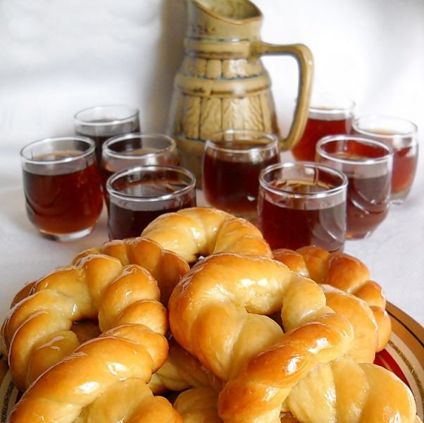În timp ce aluatul crește, se face siropul astfel: se pune la fiert apa cu zahărul şi se lasă să fiarbă câteva minute, apoi se oprește focul şi se adaugă coajă de lămâie sau de portocală şi esenţa de rom. În momentul în care aluatul a crescut, acesta se frământa puţin şi apoi se formează bile (mai mici sau mai mari, în funcţie de preferinţe), care se întind în batonase din care vei forma 8-uri.