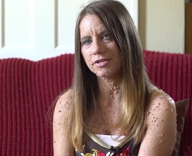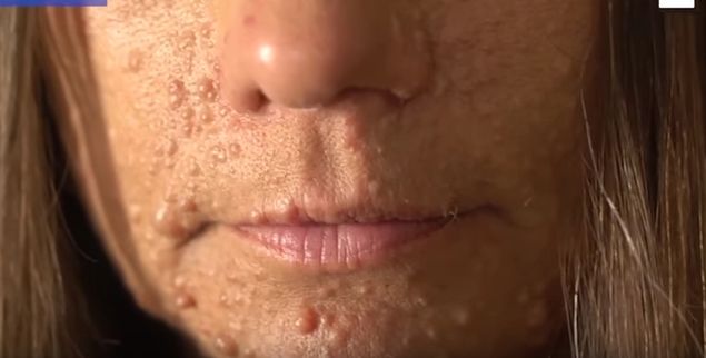 In prezent, ea are aproape sase mii de tumori pe fata si pe corp, iar acest lucru o impiedica sa duca o viata normala.