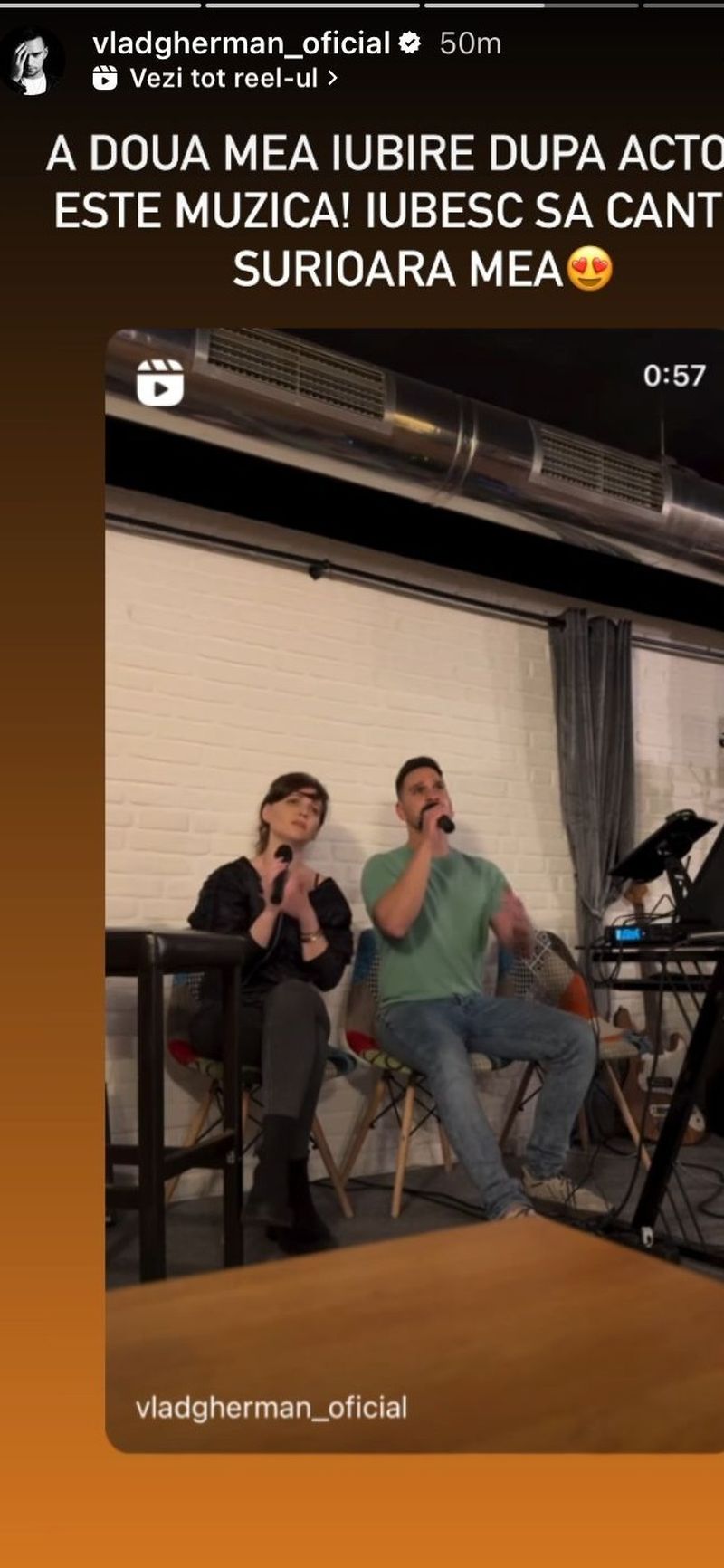 „A doua mea iubire după actorie este muzica! Iubesc să cânt cu surioara mea”, a spus Vlad Gherman în mediul online.