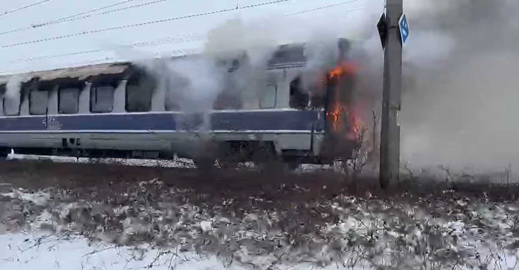 Vagonul unui tren de călători a fost cuprins de flăcări