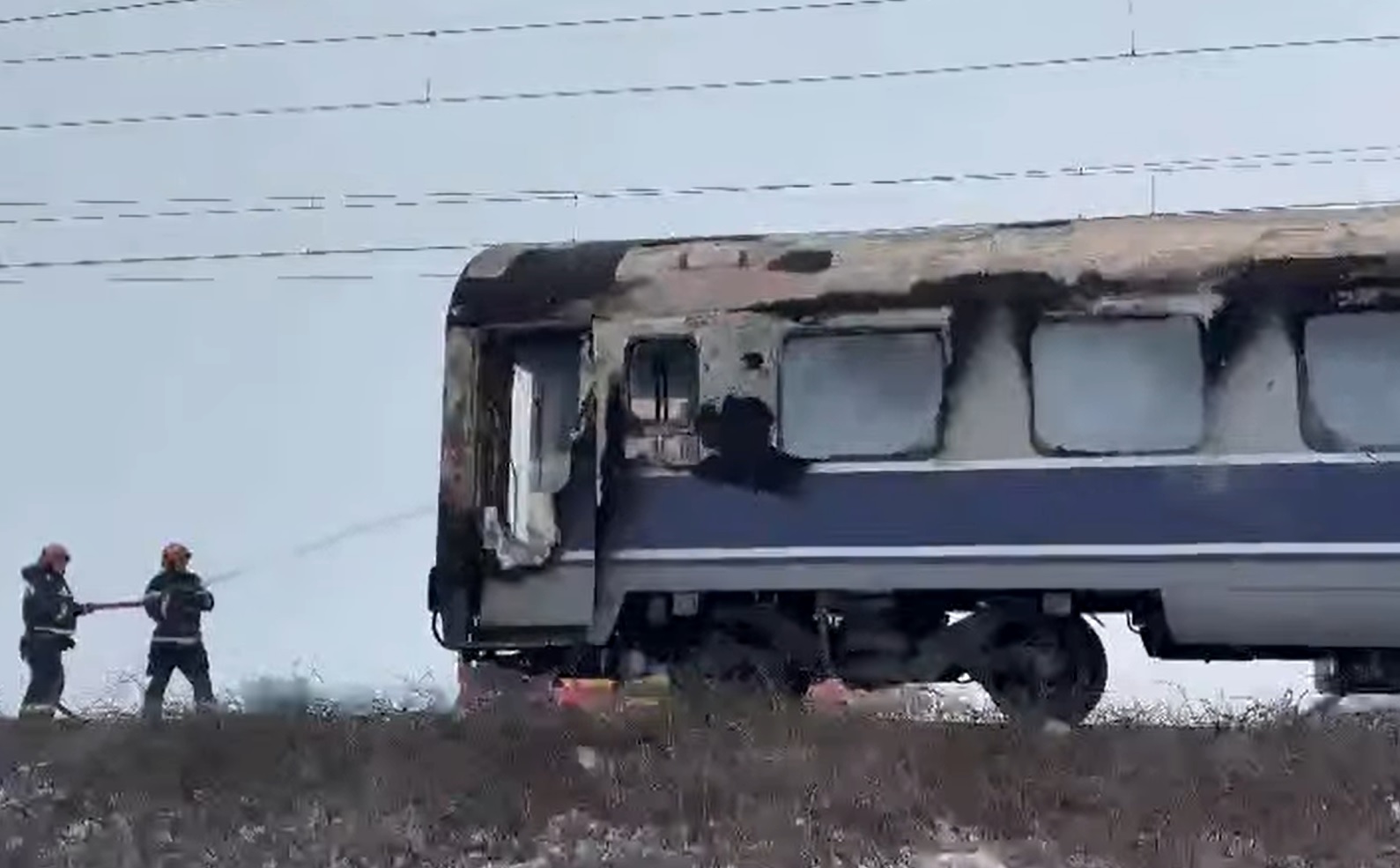 A fost activat Planul Roșu de Intervenție, după ce vagonul unui tren în care se aflau 70 de călători a luat foc! Incidentul a avut loc în Radomirești, județul Olt