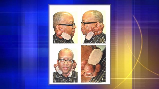 Tumorile pe care le are i-au aparut in urma cu 12 ani cand barbierul i-a taiat din greseala gatul. Rana a lasat niste cicatrici urate care nu s-au vindecat corect si an de an, straturi de piele s-au depus peste ele. In cativa ani, fata si gatul barbatului au fost acoperite.