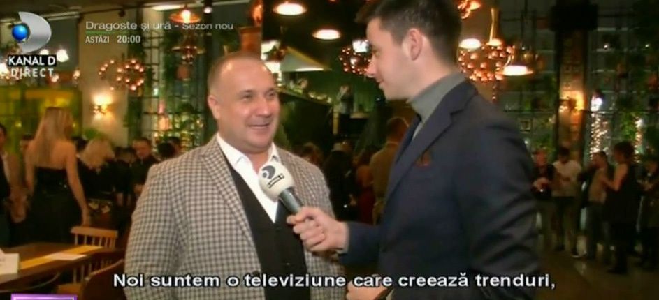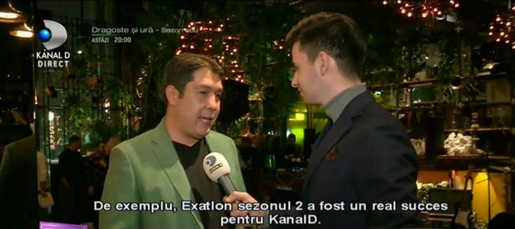 2018 a fost un an de succes pentru Kanal D. Am lansat câteva producţii în 2018, care au avut succes. De exemplu, Exatlon sezonul 2 a fost un real succes pentru Kanal D. Am lansat şi producţia Vulturii de noapte, cel mai bun show de noapte, iar în timpul zilei am lansat Puterea Dragostei, care merge extrem de bine.
