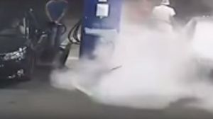 Enervat de inconştienţa tânărului şi alarmat de faptul că s-ar fi putut produce o nenorocire, angajatul benzinăriei a luat un stingător şi a decis să îl înveţe o lecţie pe şofer. El a luat un stingător de incendiu şi l-a golit în faţa bărbatului. Ceilalţi pasageri s-au dat jos din maşină mraţi de ce se întâmpla.
