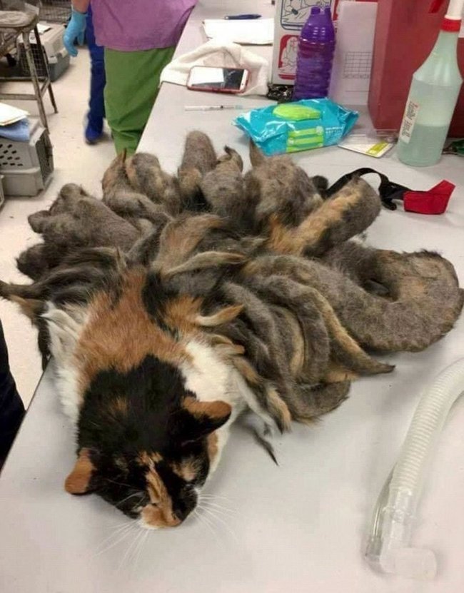 Cand a dat blana la o parte a descoperit ca de fapt era o pisica vie a carei blana a crescut haotic. Barbatul a dus-o la veterinar, a tuns-o si a scapat-o de greutatea propriei blani.