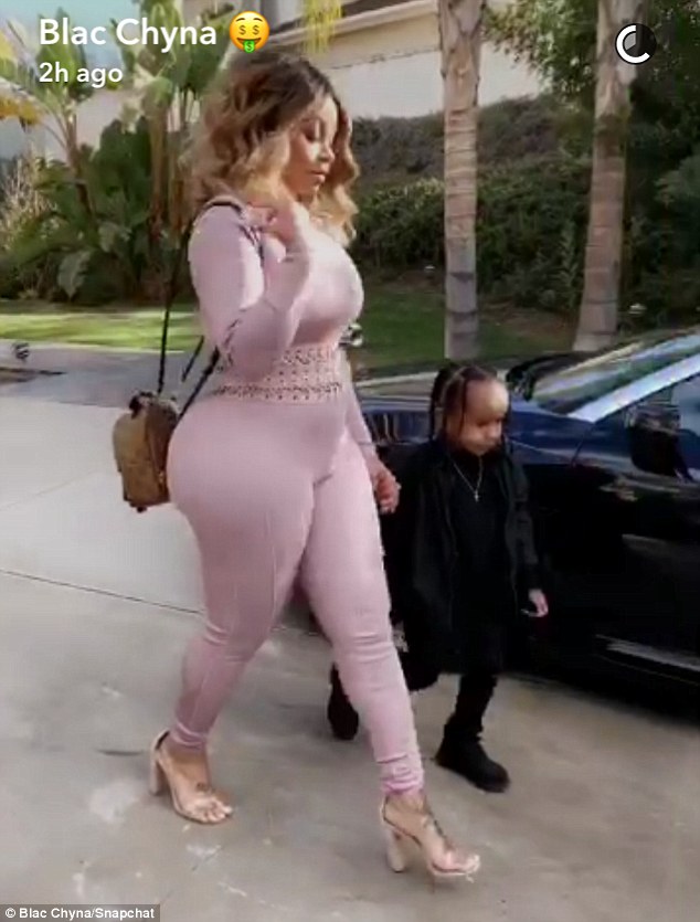 La doar 10 zile dupa ce-a nascut, Blac Chyna a iesit la plimbare intr-o salopeta mov, perfect mulata pe corp.