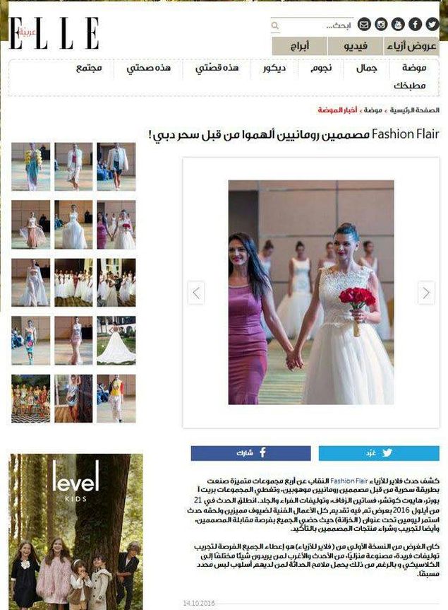 Astfel, la doar doua saptamani de la show-ul din Dubai, romanca a avut parte de o mare surpriza. In cea mai cunoscuta publicatie de fashion din Emirate, Elle Arabia, ea a fost protagonista unui material de senzatie.