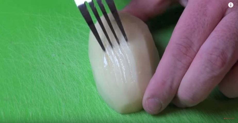 A luat un cartof şi a început să-i facă asta cu o furculiţă! Rezultatul este incredibil