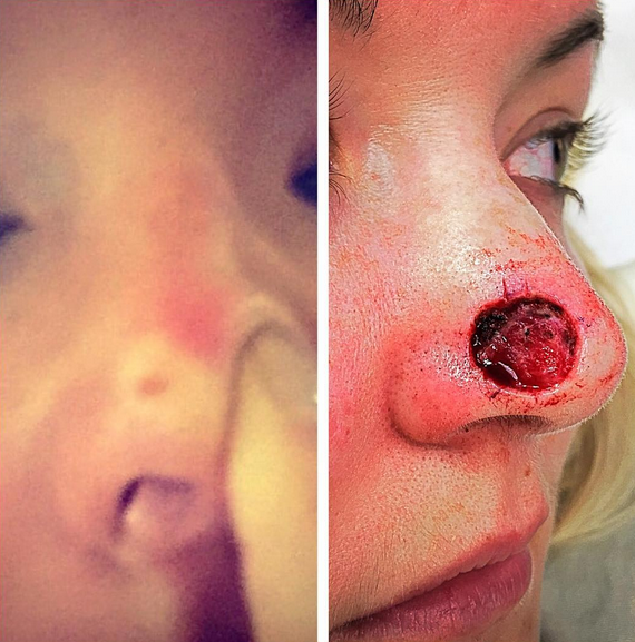 A observat un semn ciudat pe nas si a mers la doctor! Diagnosticul a ingrozit-o! Intr-un timp scurt a ramas cu o gaura in fata! Cum arata acum