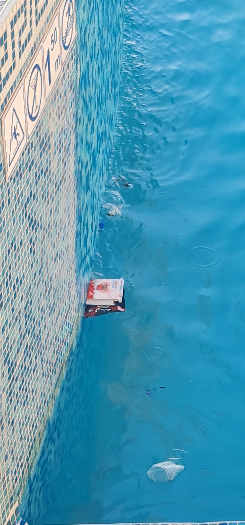 Nici piscina hotelului nu a fost o plăcere pentru român. Acesta spune că era plină de gunoaie și că nu avea cum să înoate acolo din cauza faptului că nu era curățată de foarte mult timp.