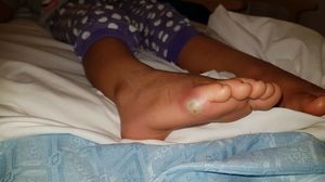 O fetita in varsta de patru ani s-a imbolnavit dupa ce a probat mai multe perechi de pantofi cand a mers cu parintii la cumparaturi. Ea se simtea foarte rau cand parintii si-au dat seama ca avea nevoie de ajutorul specialistilor, iar medicii i-au spus ca facuse o infectie la picior din cauza unei bacterii.