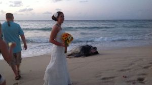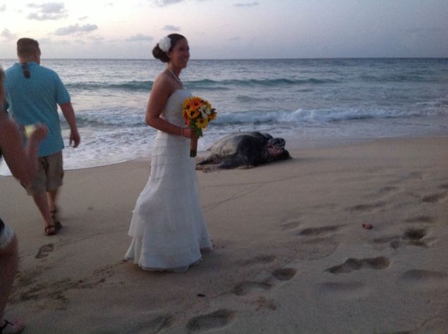 O tanara din America a vrut sa isi organizeze nunta pe plaja pentru ca evenimentul sa fie cu adevarat memorabil! Din nefericire pentru ea, a fost umbrita de catre o broasca testoasa imensa care si-a facut aparitia incet in spatele ei. Toti invitatii au dat navala sa vada reptila si sa isi faca poze cu ea, uitand complet de mireasa!