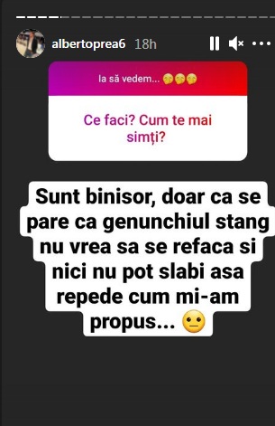 „Sunt binișor, doac să se pare că genunchiul stâng nu vrea să se refacă și nici nu pot slăbi așa repede cum mi-am propus”, a mai declarat Albert Oprea.