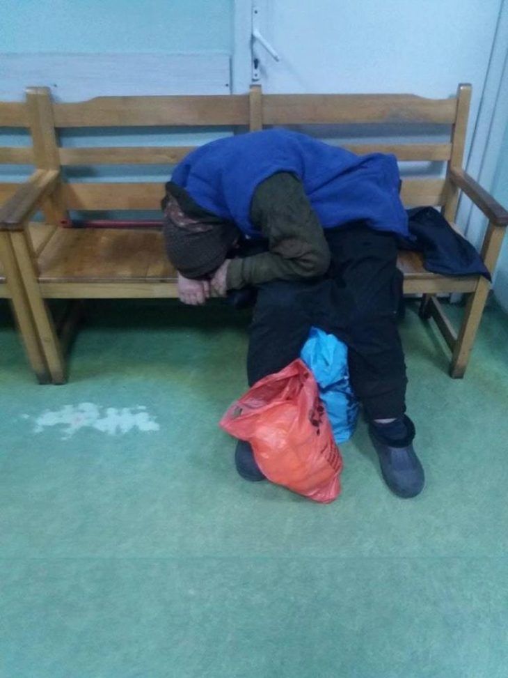 "31 martie. Spitalul Judeţean Ploiesti, Centru primiri urgenţe. O batrana adusa cu ambulanţa si lasata in sala de asteptare. Orele trec fara ca personalul medical sa-i acorde atenţie.