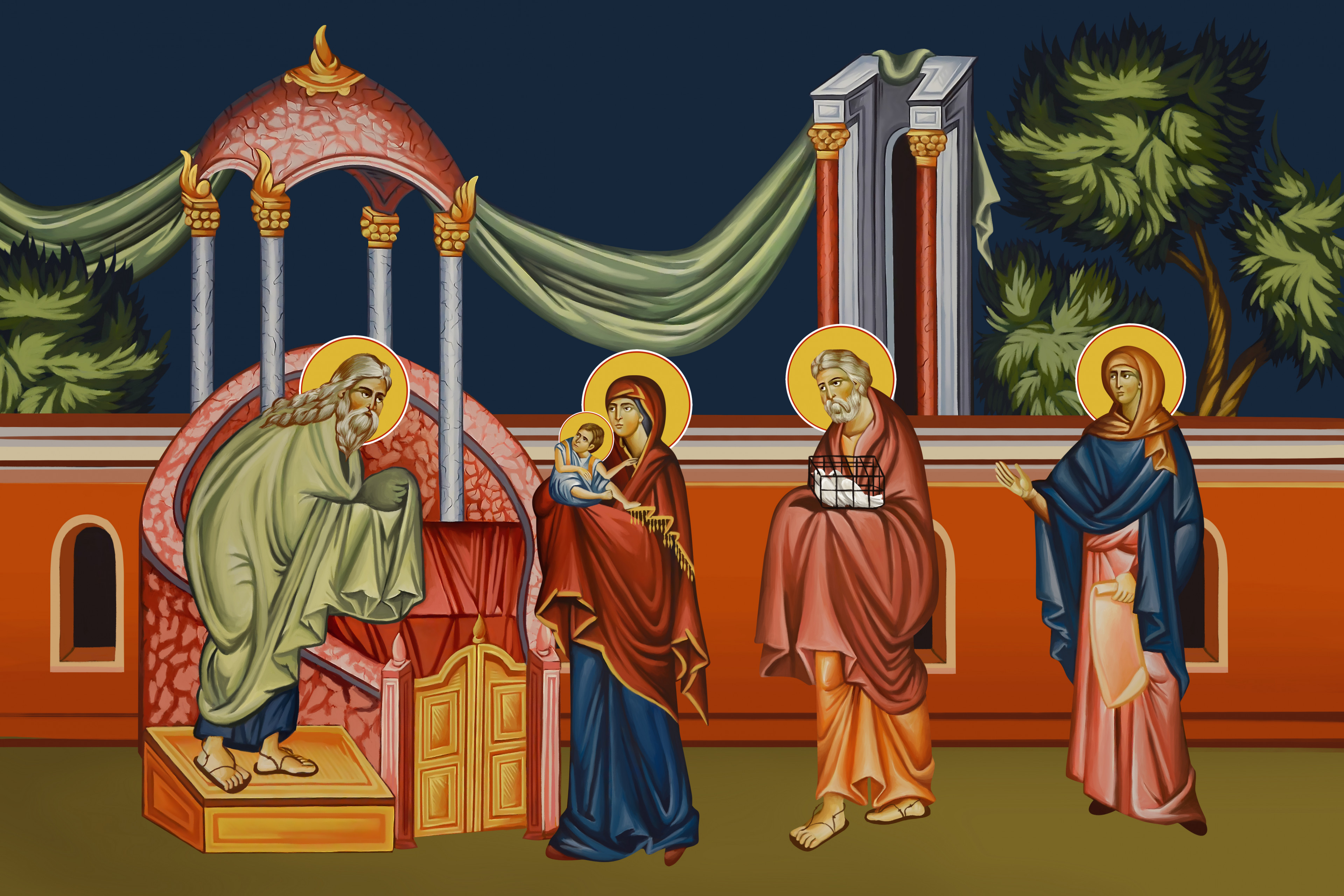 Sărbătoarea Întâmpinării Domnului are loc la 40 de zile de la nașterea Sa, iar potrivit tradiției evreiești copiii sunt duși la Templu.