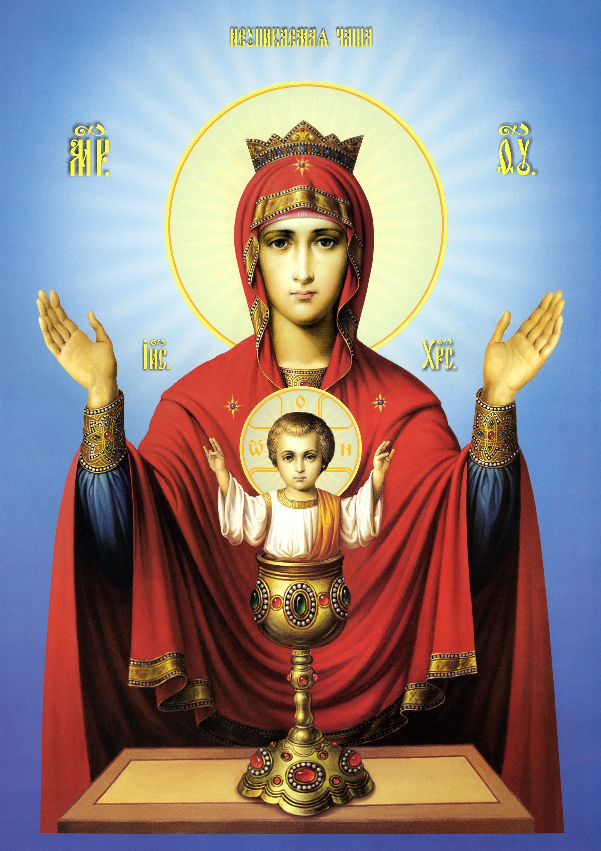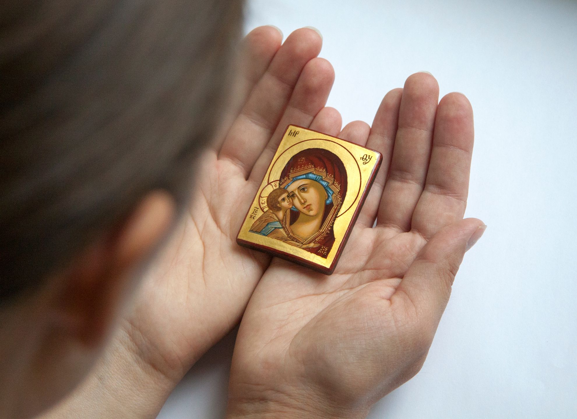 Bucură-te, cea ale cărei mâini sunt ținute la rugăciune de însăși dragostea și milostivirea ta cea către noi,