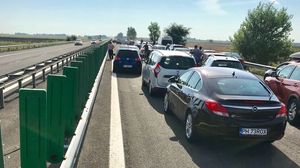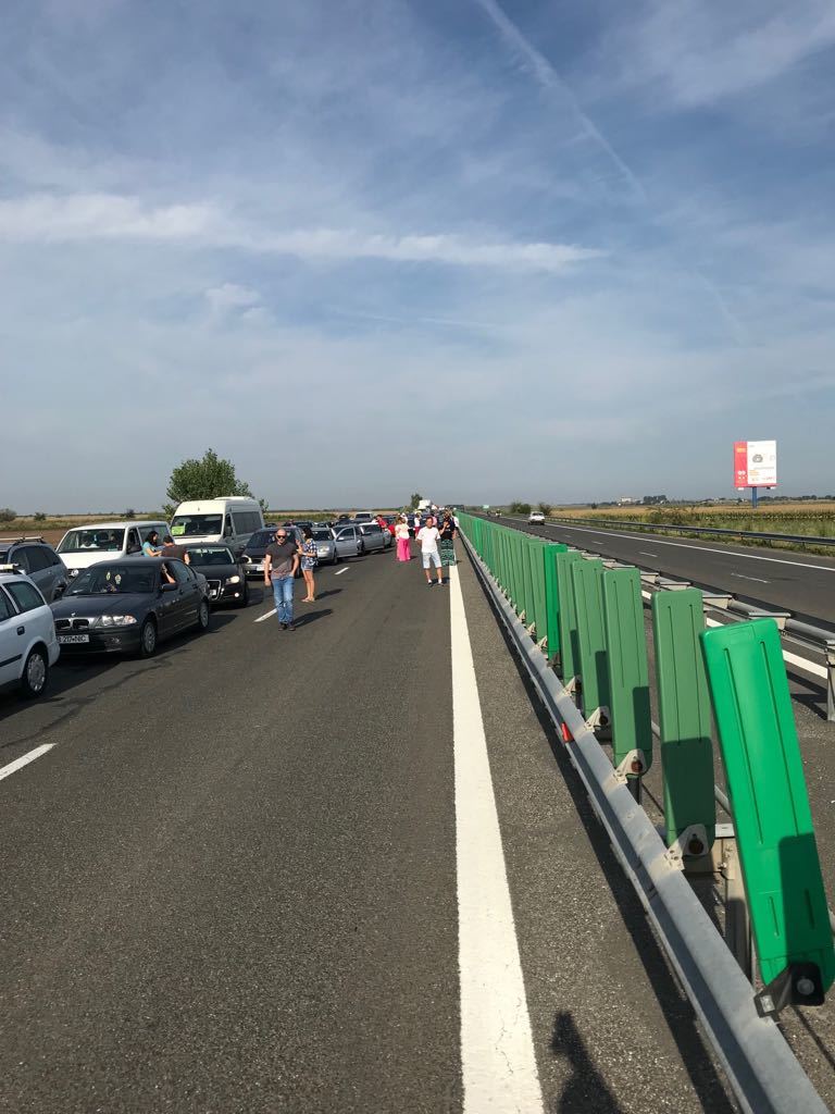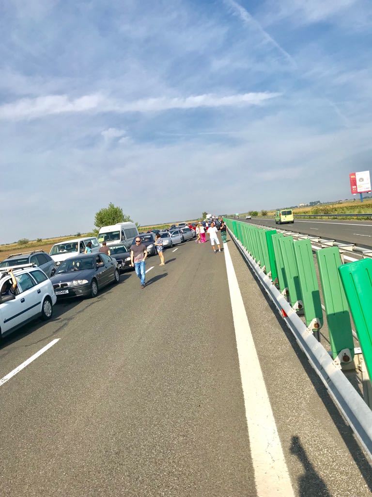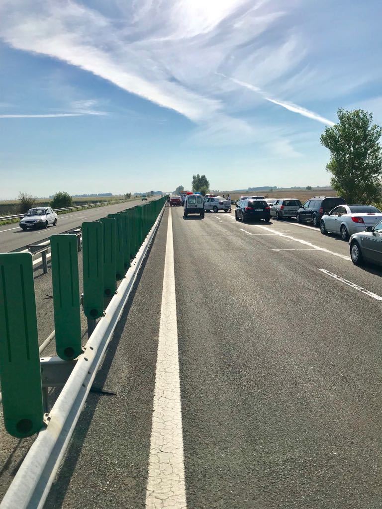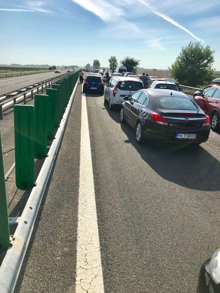 În urma impactului a rezultat rănirea uşoară a 2 persoane. Circulaţia rutieră este blocată pe banda a doua şi se desfăşoară pe prima, prin dirijare, valorile de trafic fiind în creştere. În zonă s-a format în prezent o coloană de autoturisme de aproximativ 2 kilometri.