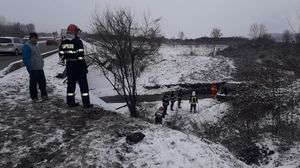 Un microbuz plin cu oameni a intrat într-un cap de pod, apoi a ajuns într-o râpă.
