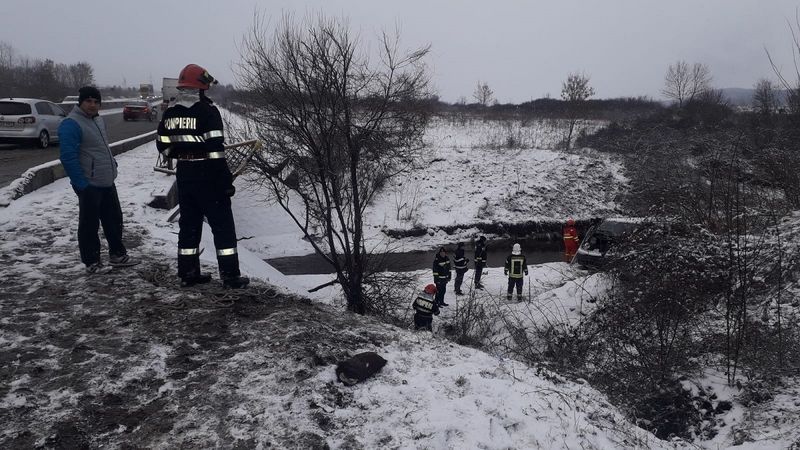 Accident grav în Sibiu: Un microbuz plin cu oameni a ajuns într-o râpă! Autorităţile au intervenit de urgenţă