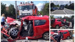 Accident mortal! O masina in care se aflau doi adulti si doi copii, spulberata de un autocar! Tatal a murit pe loc si mama este in stare grava