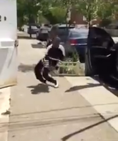 In imaginile care au facut furori pe Internet, un barbat de culoare, „ii sperie” pe trecatori, iesind din masina cand acestia treceau prin dreptul ei. Se pare ca prietenii barbatului s-au amuzat copios in aceasta filmare.