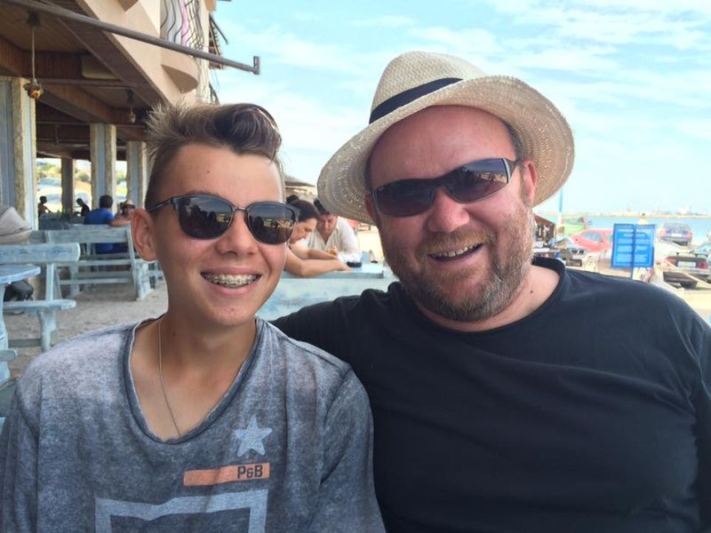 Ajuns la frumoasa varsta de 50 de ani, Mihai Constantin, fiul marelui actor George Constantin, a ales sa se relaxeze pentru cateva zile, cu familia, pe litoralul romanesc. Casatorit cu Luminita si tata a doi copii, Matei si Maria, artistul s-a tras repede in poza, cum a ajuns, alaturi de baiatul lui, elev la un liceu de renume din Capitala. Indragostit si el de teatru, pustiul calca apasat pe urmele parintelui si in privinta pasiunii pentru tenis.