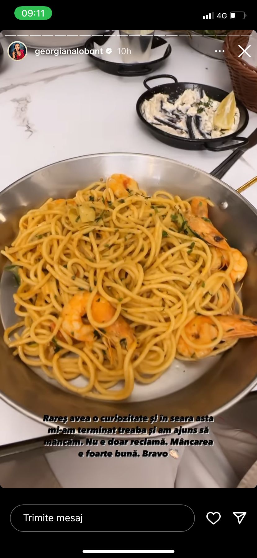 Georgiana Lobonț: „Rareș avea o curiozitate și în seara asta mi-am terminat treaba și am ajuns să mâncăm. Nu e doar reclamă. Mâncarea e foarte bună. Bravo. Și pastele sunt foarte bune. Bună, nu?”, a spus Georgiana Lobonț.
