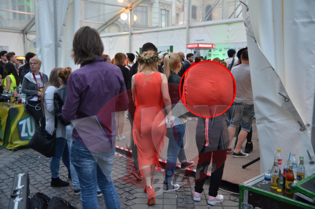 Lasand la o parte faptul ca artista a uitat sa treaca pe la saloanele de infrumusetare si a afisat la eveniment o mustata de toata frumusetea, cosuri pe fata si o plomba ingalbenita de vreme, ea a imbracat si o “tinuta” de scena nepotrivita.