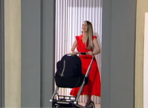 Adela Popescu a revenit la serviciu dupa pauza pe care a luat-o pentru a-si aduce copilasul pe lume. Intr-o rochie rosie ca focul, lejera, Adela a intrat in plaou increzatoare, cu zambetul pe buze, impingand un carucior.