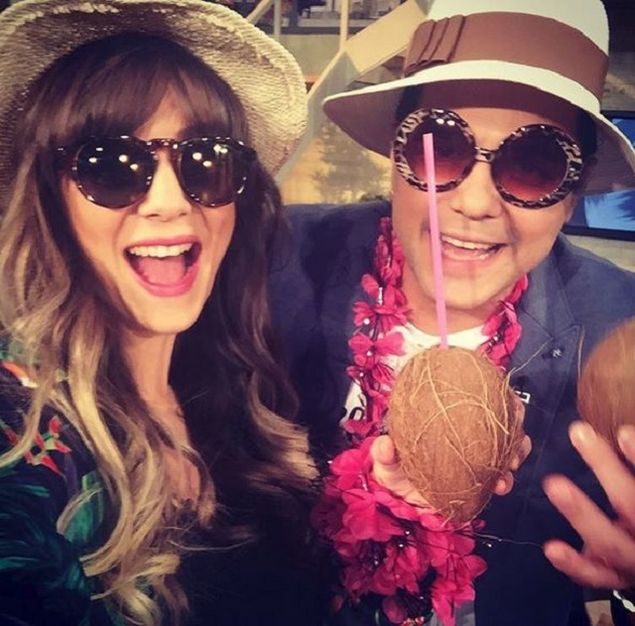 Astfel, in imaginea publicata pe internet, aceasta apare alaturi de colegul ei, Cove, purtand ochelari de soare: ”Uite, Radu Valcan, nuca de cocos avem si noi, ghirlande, palarii, ochelari si... super atmosfera!”, a fost mesajul pe care Adela Popescu i l-a transmis sotului ei.