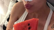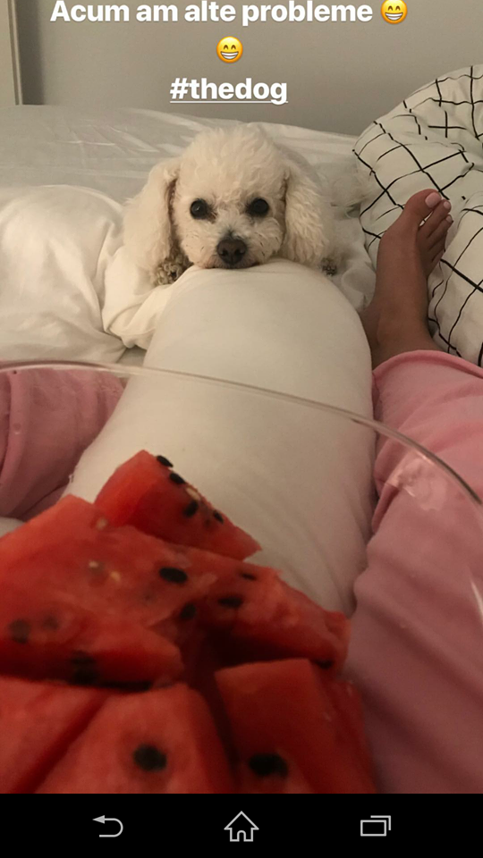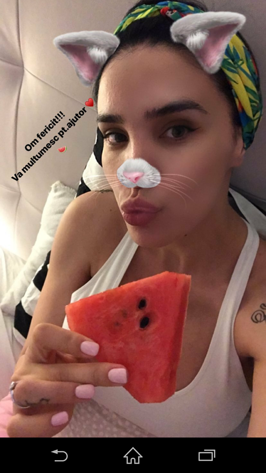 Putin timp mai tarziu, Adelina a adaugat o alta poza in care putea fi vazuta stan in pat, cu o felie de pepene in mana. „Om fericit!!! Va multumesc pentru ajutor”, le-a transmis ea fanilor sai.