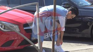 Ba si-a uitat ceva in masina si s-a aplecat sa caute, ba s-a oprit sa isi indrepte sosetele sic, cert e ca a oferit cateva pozitii de infarct pentru trecatori.