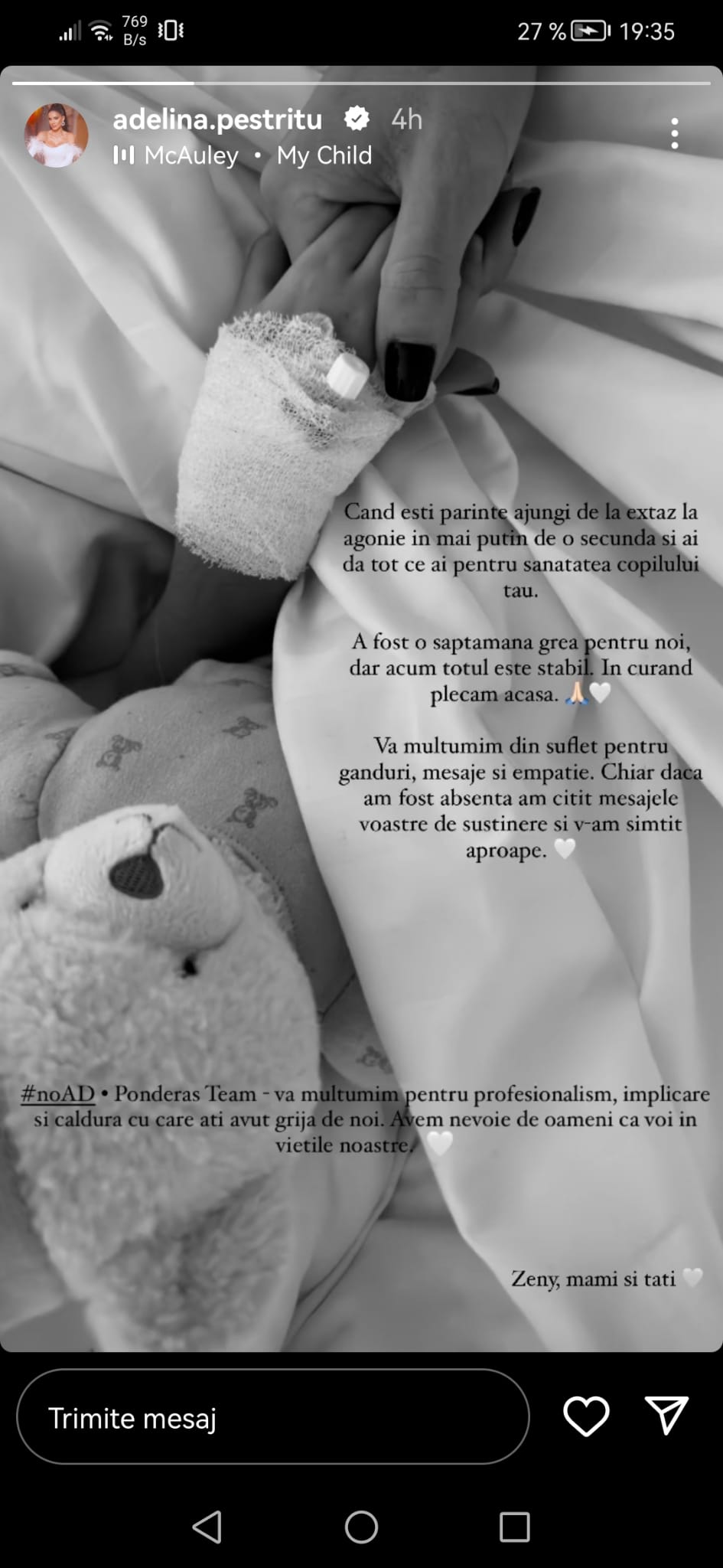 Iar acum, după ce și-a văzut fata simțindu-se mult mai bine și s-au reîntors acasă, Adelina Pestrițu a revenit în atenția celor din online, acolo unde a lipsit total în această perioadă grea.