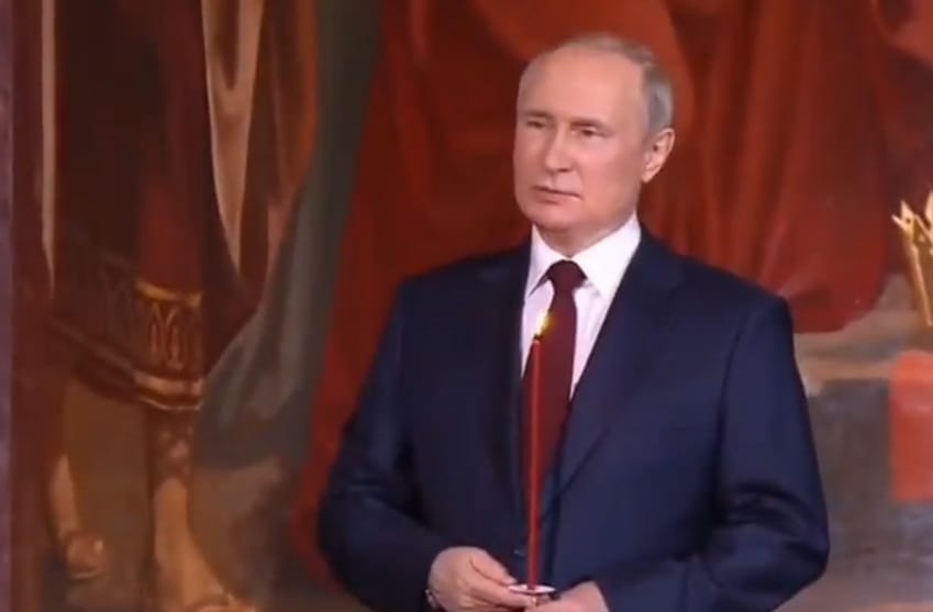 Mai mulți internauți au pus sub semnul întrebării apariția lui Putin la slujba de Înviere.