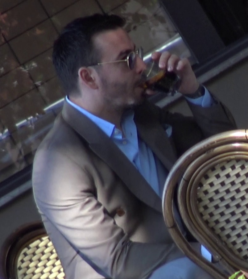 Adi Cristea e somer, dar se crede un boier! "Printul" a iesit la terasa imbracat la patru ace si a fumat trabuc ca mafiotii VIDEO EXCLUSIV