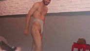 Adrian a apărut numai în lenjerie intimă, pe care și-a ridicat-o deasupra buricului, spre amuzamentul celor din casa băieților.
