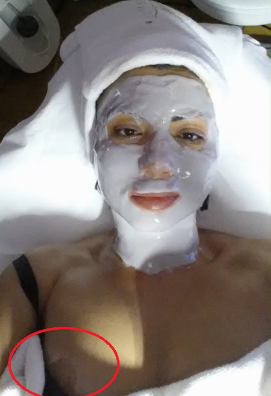 Adriana Bahmuteanu a fost la un salon cosmetic pentru un tratament facial. Preocupata sa-si surprinda masca de pe fata cat mai bine, prezentatoarea nu a observat ca prosopul i s-a dat la o parte si a lasat la vedere ceea ce pare a fi un sfarc.