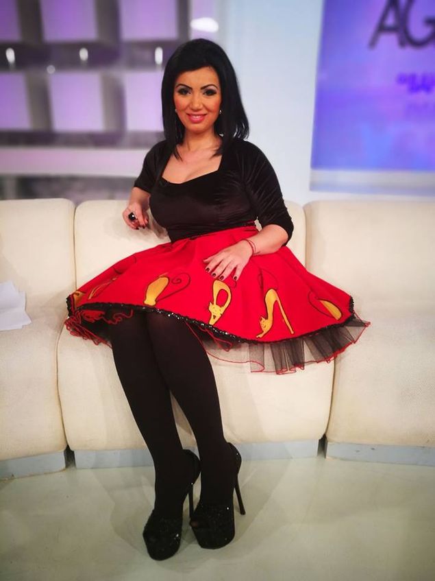 „Fericita in fustita mea cu pisicute pictate manual, chiar de mine”, a scris Bahmu in dreptul pozei sale.