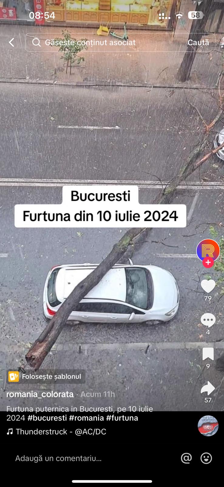 „Deci uitați-vă ce a făcut o furtună înfiorătoare în centrul Capitalei. A căzut acoperișul de pe bloc. Cu cărămizi, ferească Dumnezeu. Mașina asta este avariată, șoferul filmează și el, dar mașina este avariată. Bietul om, cred că s-a speriat de moarte, i-a căzut pe parbriz un lemn din ăsta. Asta în doar câteva minute. Era cald când ne pregăteam să ieșim și uite ce s-a întâmplat. (…) Eu nu-mi aduc aminte în copilăria mea să fi avut furtuni de genul ăsta în București, niciodată. (…) Vântul foarte puternic a smuls acoperișul de pe imobilul în care locuim. Doamne ferește. Copaci smulși, deci o nenorocire. (…) Uneori intervine și neprevăzutul, era frumos, era cald, era soare și dintr-o dată s-a pornit vijelia. Bine că n-a omorât pe nimeni nenorocirea asta.”, a spus Adriana Bahmuțeanu, într-un videoclip postat pe TikTok.