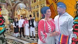 Atât ei, cât și nașii lor au purtat costume populare românești într-unul dintre cele mai importante momente din viața lor de cuplu. Cei doi și-au dorit să facă acest pas într-o mănăstire cu greutate istorică, lucru care s-a și întâmplat. Cu toate acestea, Adriana Bahmuțeanu a rămas cu un gust amar, din pricina faptului că, din cauza unor motive geopolitice, există o mare posibilitatea ca slujba lor de cununie să fi fost ultima rostită în limba română.