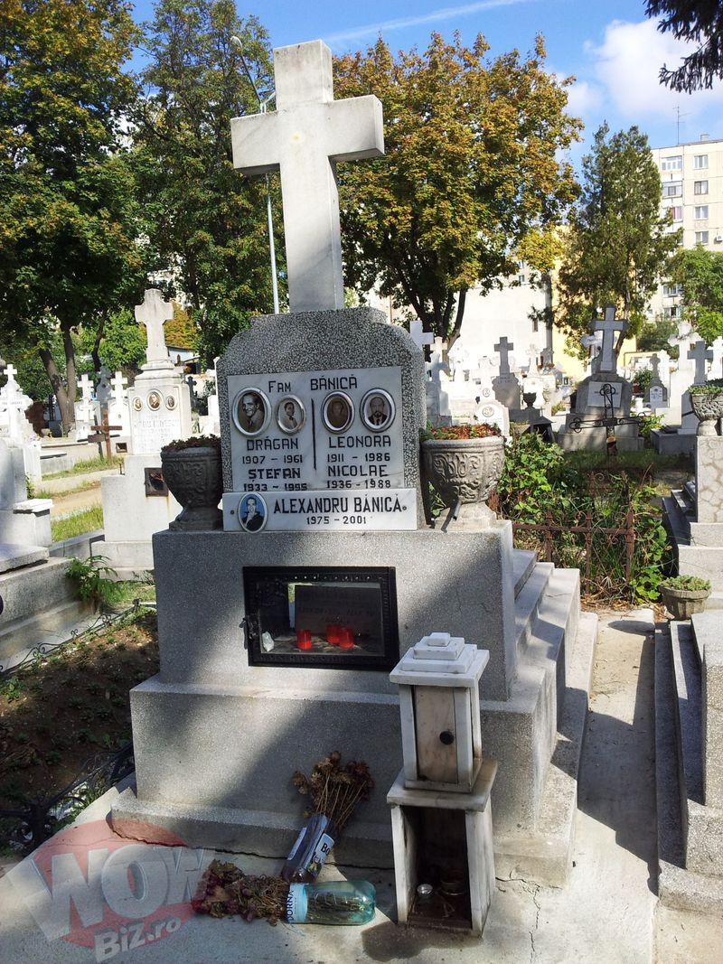 Stefan Banica senior ne-a parasit in 1995, la 62 de aniStefan Banica senior ne-a parasit in 1995, la 62 de ani„P-acolo prin spate e… Nu mai stiu exact!„, ne-a incurajat unul dintre groparii grabiti sa execute un cavou care trebuia dat „in primire”. Pe ultima alee, mormantul lui Banica senior are o cruce cu… cinci poze! A sa, a mamei, a tatalui, a fratelui si… a fiului sau mai mic! E vorba de Alexandru Banica, decedat in 2001 la numai 26 de ani!