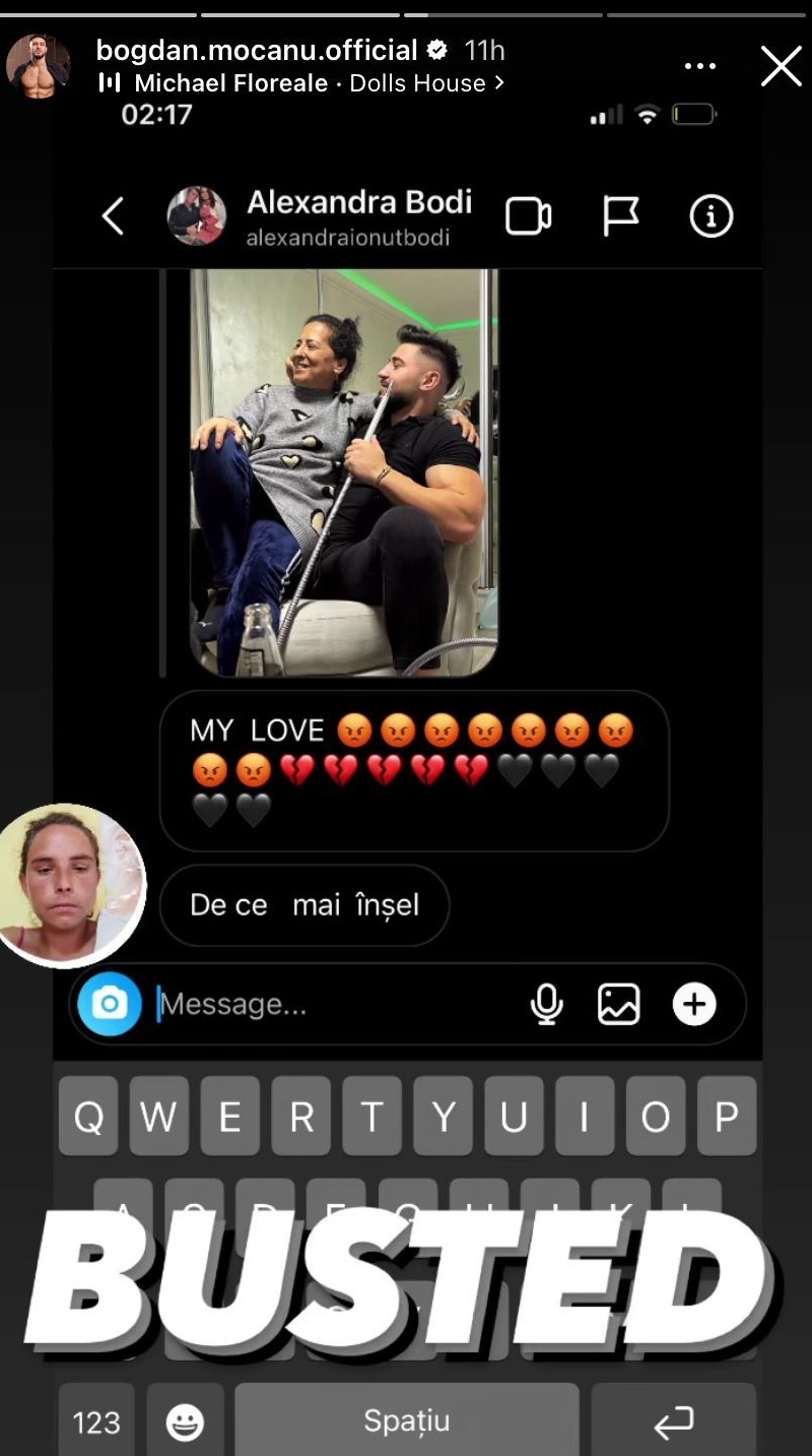 Ulterior, Bogdan Mocanu a împărtășit reacția Alexandrei Bodi cu fanii lui din mediul online.