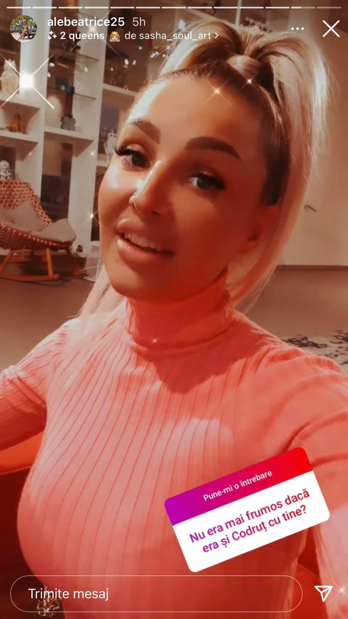 ”Nu-l mai port și nici nu mai am de ce să mai port așa ceva”, a răspuns Alexandra, după ce a primit o întrebare legată de inelul de la Codruț. Ba mai mult decât atât, blondina susține că nu vrea să mai fie vreodată alături de fostul ei iubit, pentru că îi este bine așa cum este. Singură, liniștită și fericită, fără un stres pe cap, așa cum spune ea.
