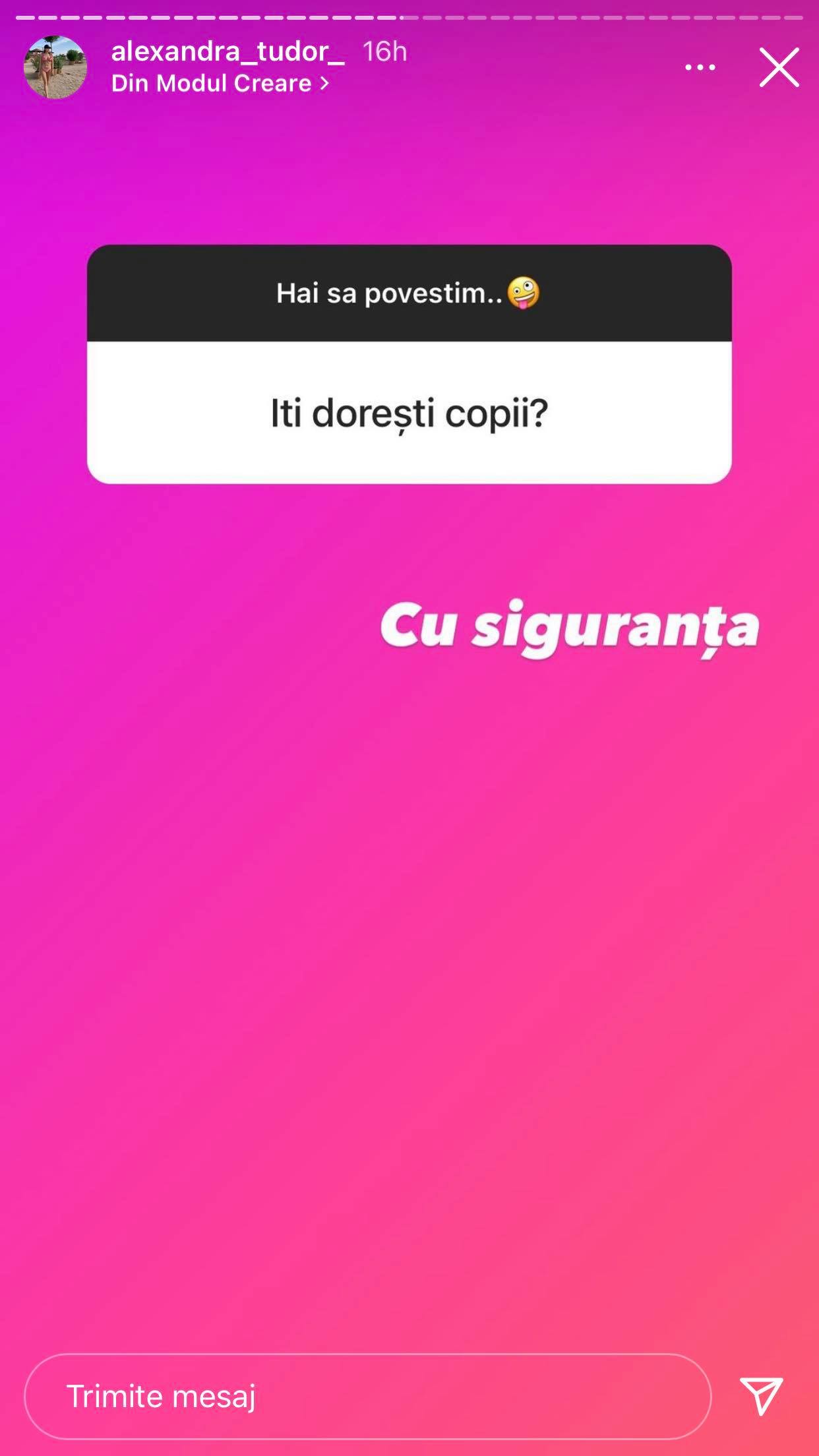 Fosta parteneră de viața a lui Sebastian Chitoșcă își dorește să devină mămică. După separarea definitivă de fostul fotbalist, Alexandra a recunoscut pe Instagram că își dorește să aibă un copil. Bineînțeles că toate se vor întâmpla atunci când le va fi vremea. Tânăra nu a dorit să dea detalii despre despărțirea de Sebastian, însă a ținut să le spună internauților că se simte bine.